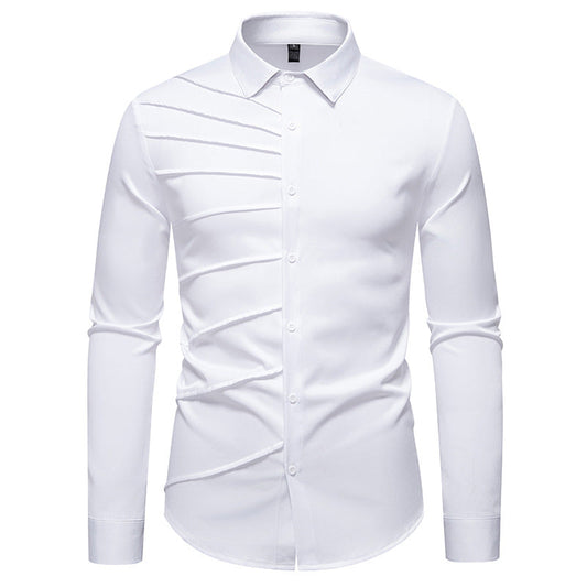Herren modisches Langarmhemd mit ausgefallenem Falten-Design Stilzeits