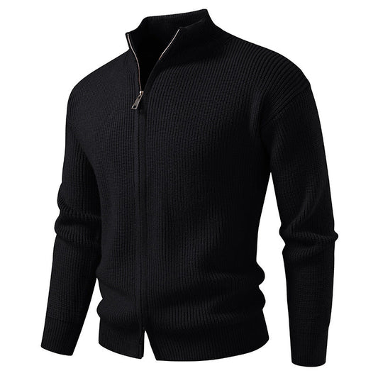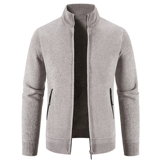 Herren elegante Strickjacke mit hohem Kragen und praktischen Reißverschlusstaschen Stilzeits
