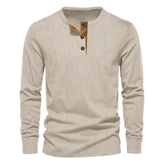 Herren lässiges Langarmshirt mit Knopfleiste und Rippstruktur Stilzeits