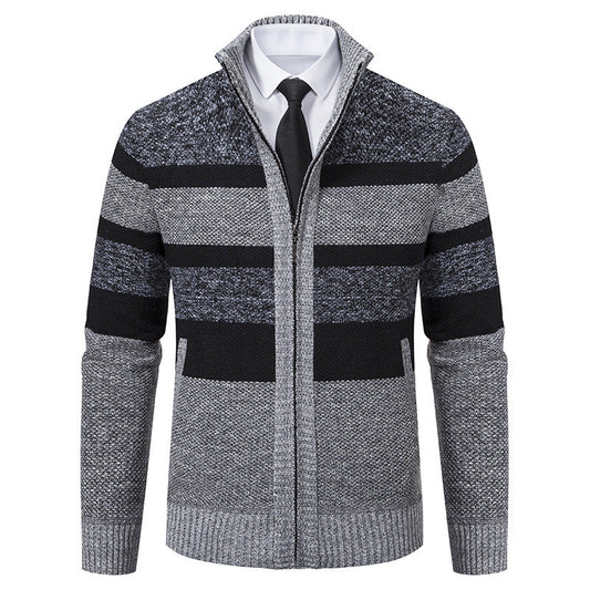 Herren modischer Strickjacke mit hohem Kragen und gestreiftem Design Stilzeits