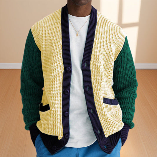 Herren Lässige Strickjacke im modernen Waffelmuster mit Kontrastärmeln und praktischen Taschen Stilzeits