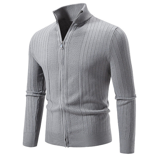 Herren Strickjacke mit klarem Rippenmuster und bequemem Stehkragen Stilzeits