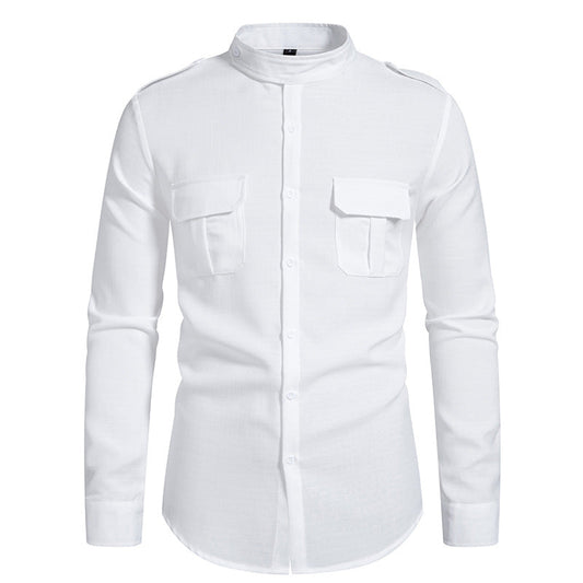 Herren langärmliges Hemd mit zwei praktischen Brusttaschen und modernem Stehkragen Stilzeits