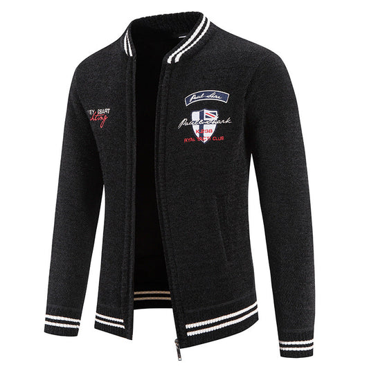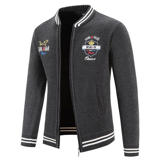 Herren sportliche Strickjacke mit Stehkragen und abwechslungsreicher Stickerei Stilzeits