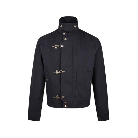 Herren modische Kurzjacke mit innovativen Schnallen und praktischem hochgeschlossenem Kragen Stilzeits