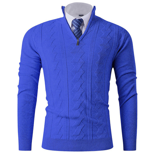 Herren eleganter Stehkragenpullover mit strukturiertem Zipper Stilzeits