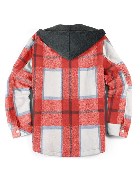Herren Langarm-Hemdjacke mit Kapuze und modernem Karomuster Stilzeits