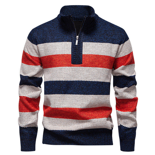 Herren modischer Strickpullover mit halbem Reißverschluss und gestreiftem Muster Stilzeits