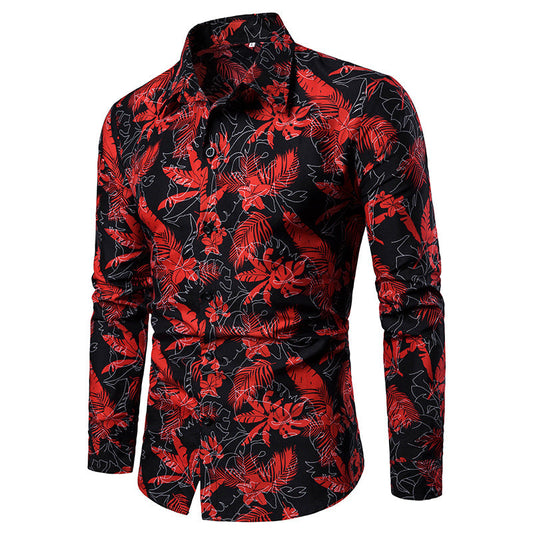 Herren Langarmshirt mit künstlerischem Grafikdruck und praktischem Knopfverschluss Stilzeits
