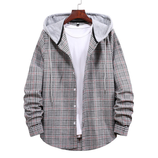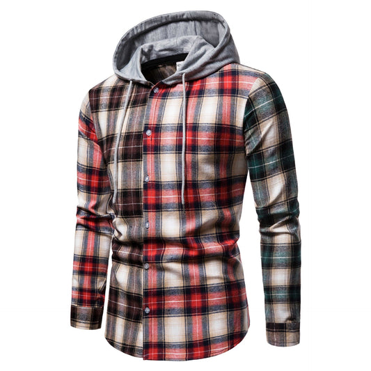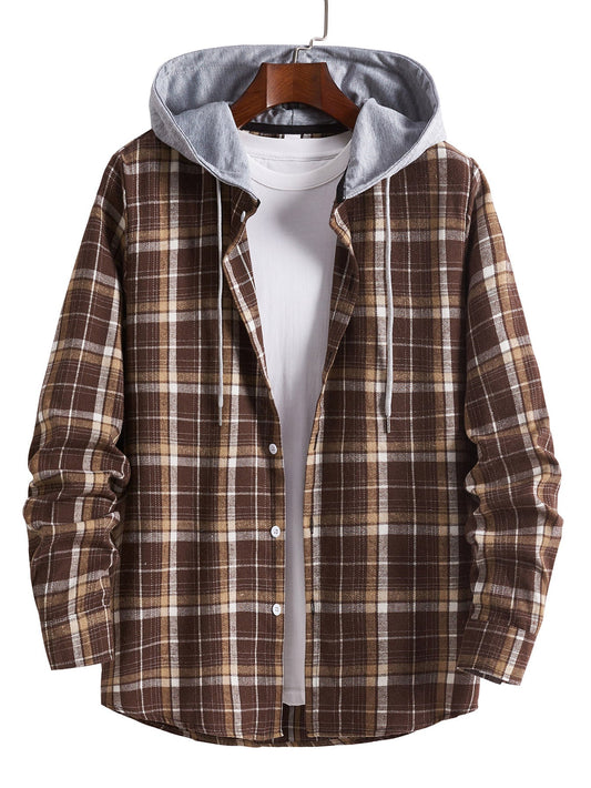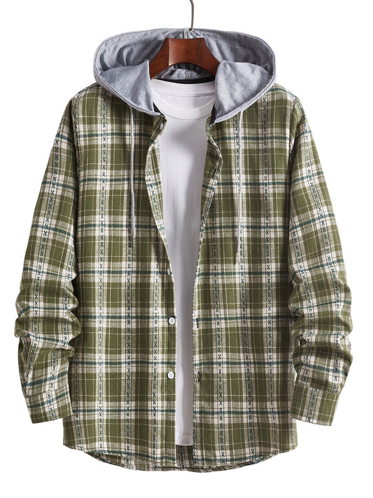 Herren Karomuster Hemd mit integrierter Kapuze Stilzeits