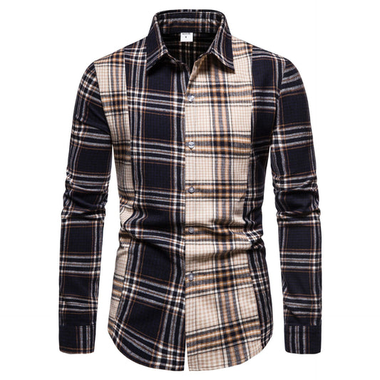 Herren Langarmhemd im kreativen Patchwork-Design Stilzeits