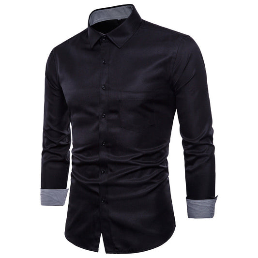 Herren Langarmhemd aus hochwertigem Satin mit modernem Slim-Fit Stilzeits