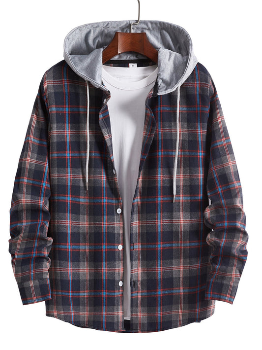Herren Flanellhemd mit abnehmbarer Kapuze Stilzeits