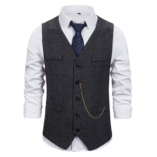 Herren stilvolle Anzugweste im eleganten Fischgrätmuster mit praktischen Taschen Stilzeits