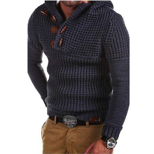 Herren Strickpullover mit kapuze und Holzknöpfen Stilzeits