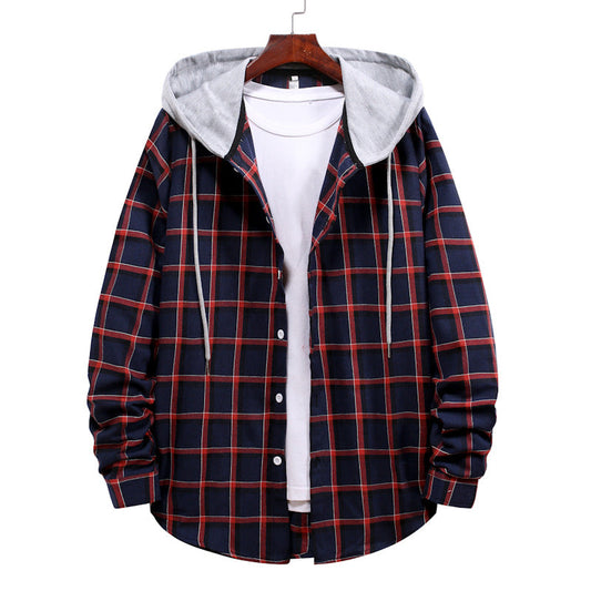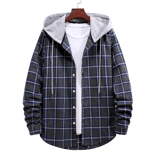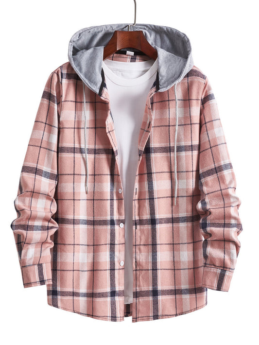 Herren Übergangshemden mit integrierter Kapuze und kariertem Design Stilzeits