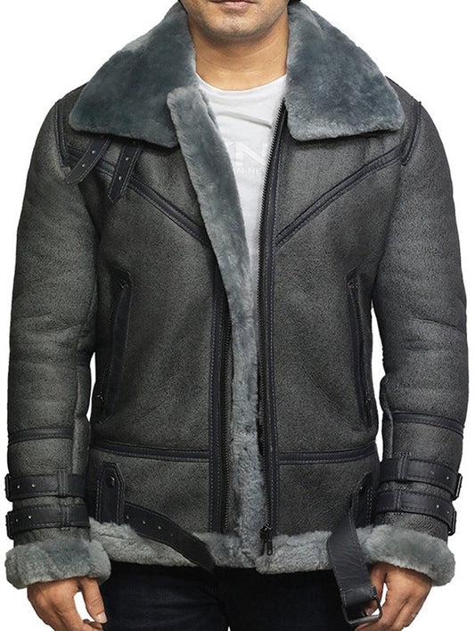 Herren Lammfell-Bikerjacke mit luxuriösem Teddyfutter und praktischen Details Stilzeits