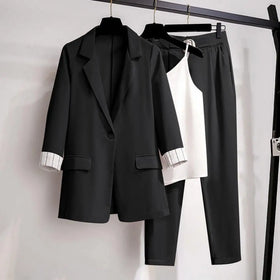 Dieses dreiteilige Anzugsset ist ein echter Hingucker mit auffälligem Design. Ob mit oder ohne Blazer – Sie sehen sexy und stilvoll aus. Der hochwertige Stoff fühlt sich angenehm auf der Haut an.
