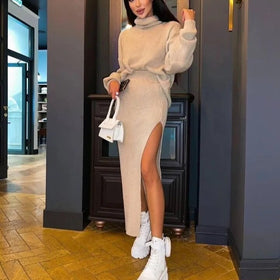 Dieses schicke und bequeme Pullover-Rock-Set von Sung erweitert Ihre Garderobe. Das minimalistische Set ist aus luxuriösem, ultraweichem Strick gefertigt und bietet höchsten Komfort für jeden Anlass. Es hat eine Oversize-Passform.