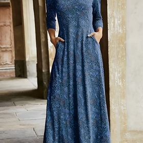 Das elegante, lange Adeline-Kleid verbindet Vintage-Charme mit modernem Design. Das Retro-Muster erinnert an alte Wandteppiche und Blumen. Seine fließende Silhouette, die hochgeschlossene Taille und der dezente Ausschnitt machen es vielseitig. Adeline verkörpert klassische Schönheit und zeitlosen Stil.