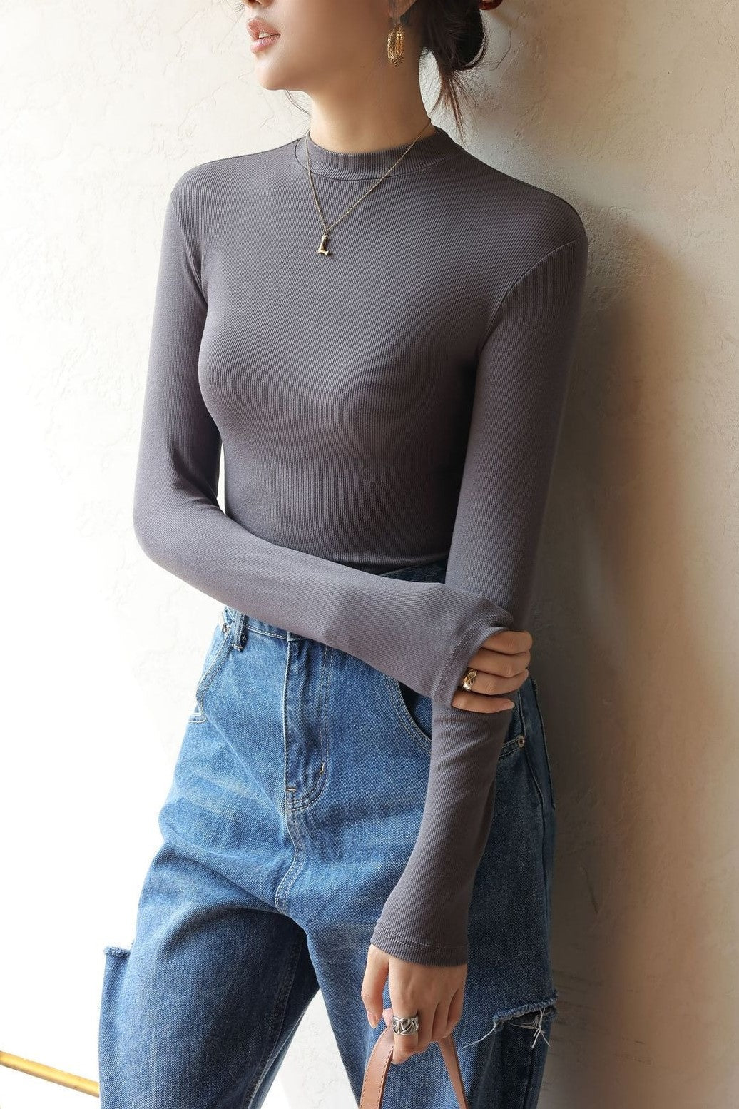 Das Alva T-Shirt mit dezentem Stehkragen und enger Passform ist perfekt für modische Outfits. Es ist vielseitig einsetzbar, als Solo-Teil oder unter Jacken, für Alltag und besondere Anlässe.