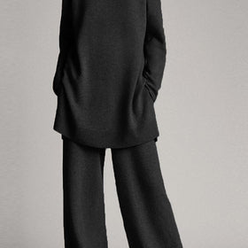 Das Amila Hoher Halsausschnitt Lose Pullover Set von ist eine perfekte Mischung aus Raffinesse und Leichtigkeit, kuratiert für den modebewussten, aber entspannten Menschen.