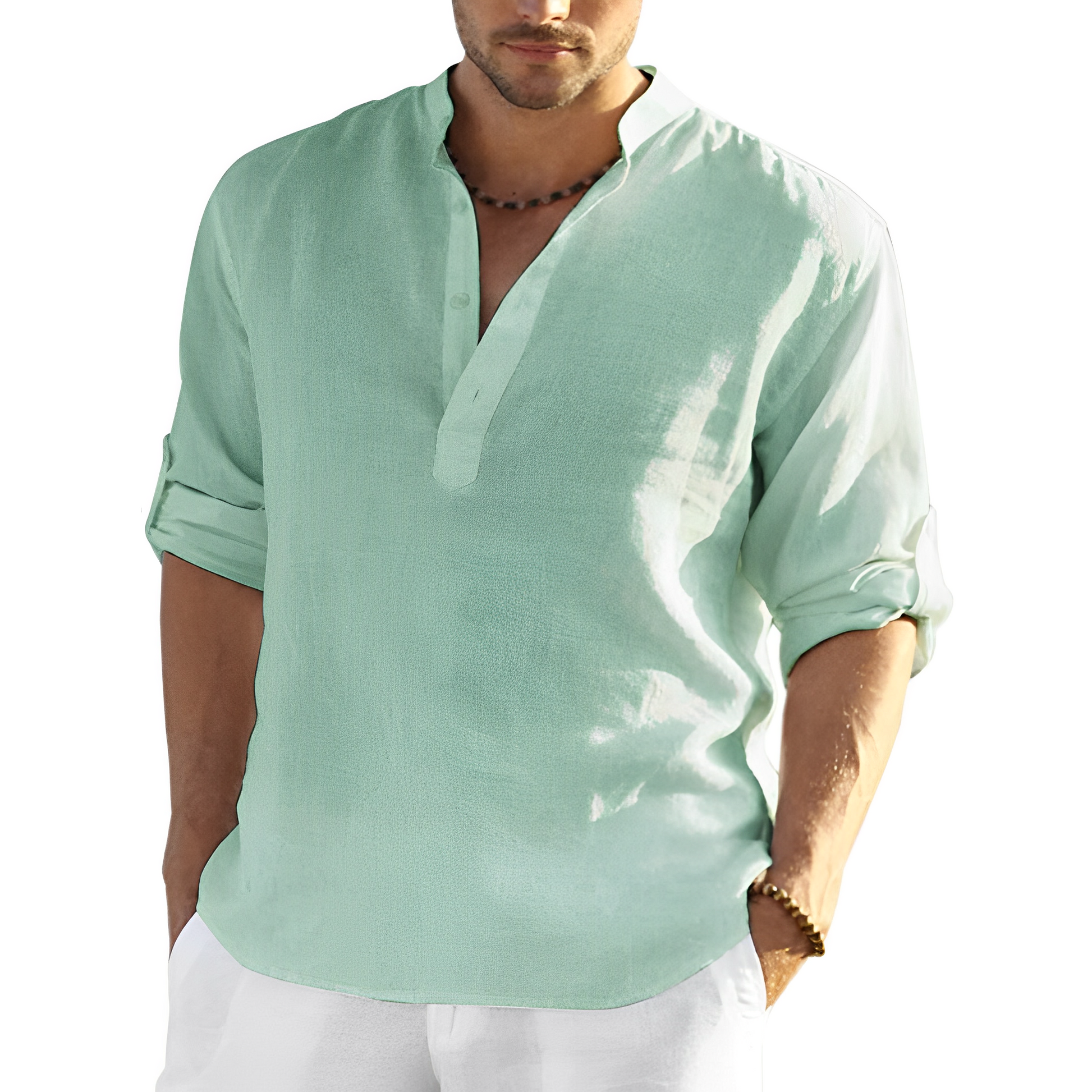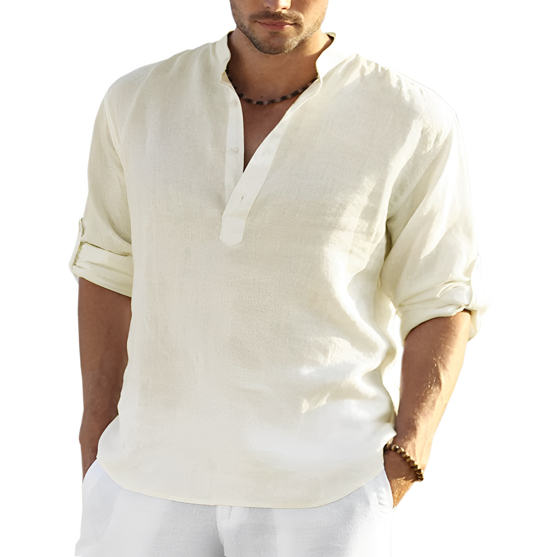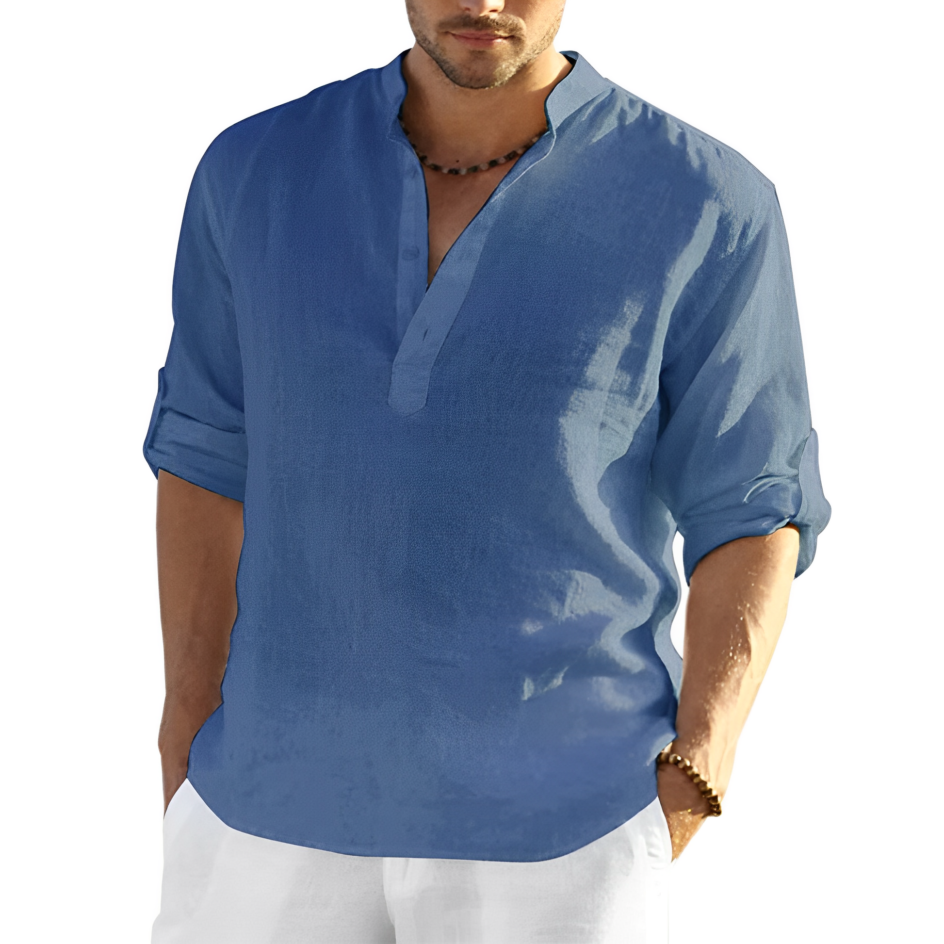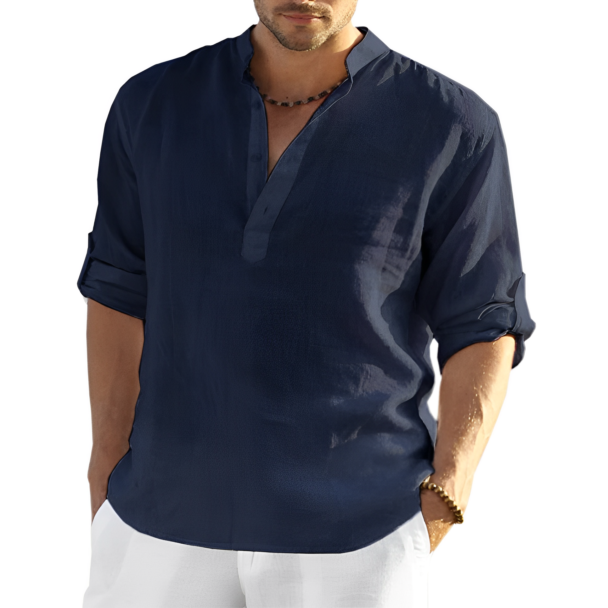 - Klassische Eleganz: Mit seinem traditionellen Schnitt und feinen Details verleiht das Adriano Leinenhemd Ihnen einen zeitlosen und edlen Look.