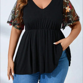 Annabel Damen-Shirt: V-Ausschnitt, Mesh-Einsatz