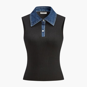 Ärmelloses Rippenhemd aus Denim mit Stehkragen von Fudus