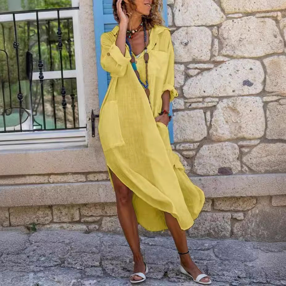 Baumwoll-Leinen Langarm Kleid von Fudus