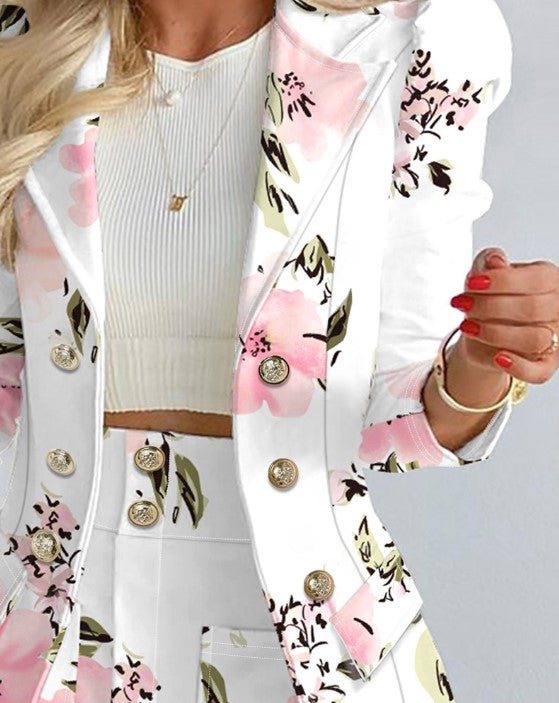 Blazer mit Blumenmuster und Puffärmeln, zweireihig