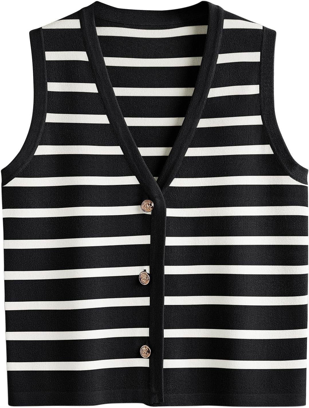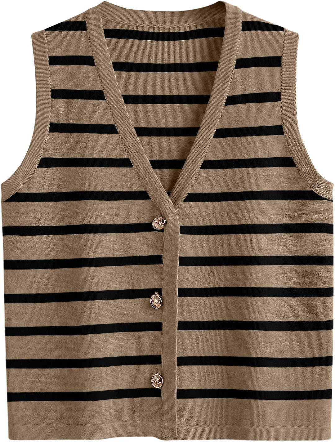 Damen ärmellose Strickweste mit V-Ausschnitt und dekorativen Knöpfen Stilzeits