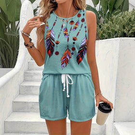 Damen Baumwoll Overall mit buntem Federmuster Stilzeits