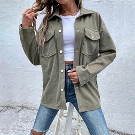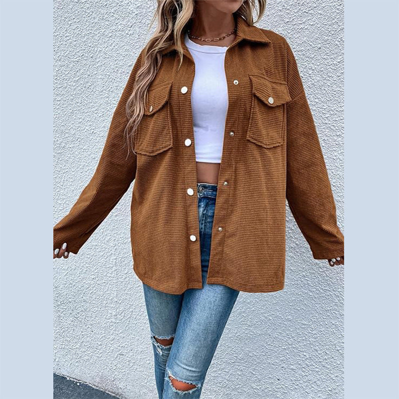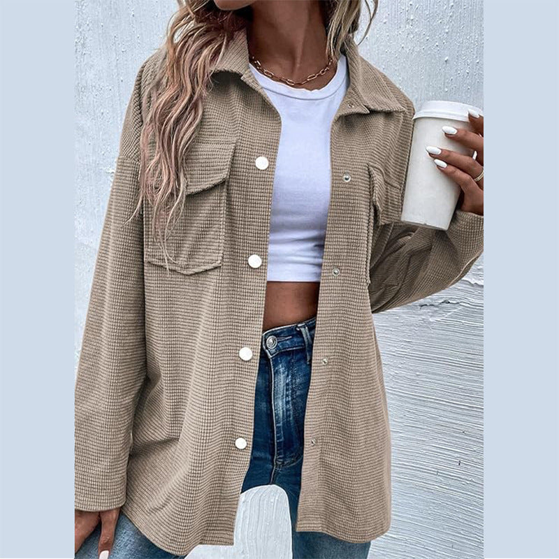 Damen Bequeme Waffel-Design Bluse mit Taschen Stilzeits