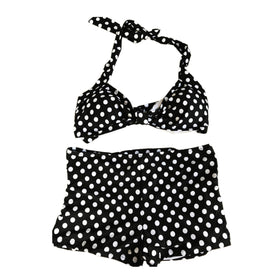 Entdecken Sie unser stilvolles Damen Bikini-Set, das Komfort und Eleganz perfekt vereint. Dieses Set besteht aus einem hübschen gepolsterten Oberteil mit einem charmanten Knotenverschluss, das eine optimale Passform und Unterstützung bietet. Die breiten Träger ermöglichen einen sicheren Halt, während das verspielte, gepunktete Design für einen trendigen Look sorgt.