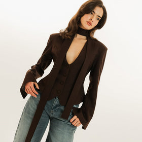 Damen Blazer mit hochgeschlossenem Kragen und voluminösen Ärmeln Stilzeits