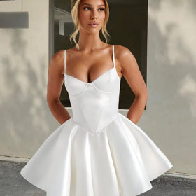 Damen Couture Mini-Kleid mit schickem A-Linien Schnitt und Spaghettiträgern Stilzeits