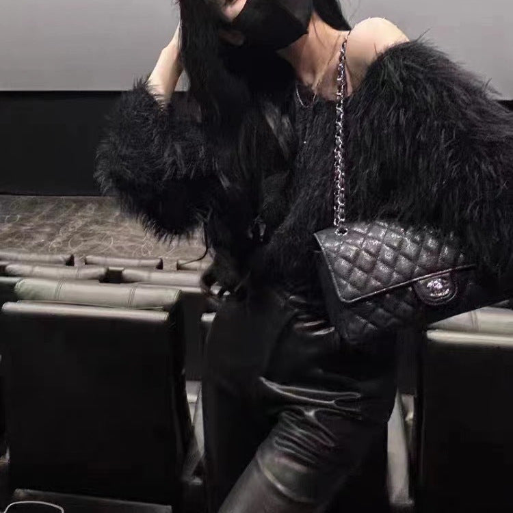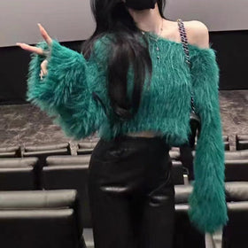 Genießen Sie den modernen Look und die herausragende Qualität unseres cropped Pullovers mit flauschiger Textur und Off-Shoulder-Design von Stilzeits.