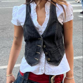 Damen Denim-Weste mit eleganten Knopfdetails und modernen Taschen Stilzeits