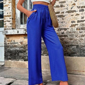 Damen Elegante Freizeit-Hosen mit elastischem Bund und seitlichen Taschen Stilzeits