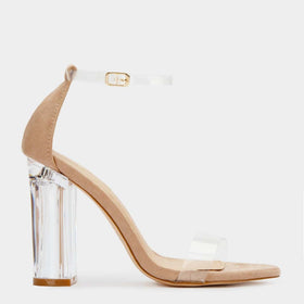 - Visuelle Wirkung: Der Blockabsatz verleiht Stabilität und einen eleganten Auftritt, während die transparente Optik die Beine optisch verlängert.