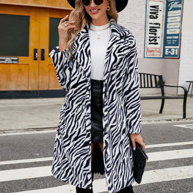Damen Eleganter Kunstpelzmantel im Zebra-Design Stilzeits