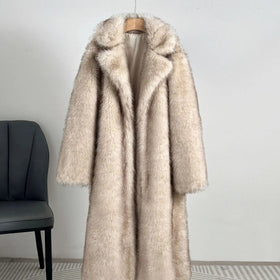 Damen Eleganter Pelzmantel mit großen Taschen Stilzeits