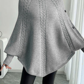 Damen Eleganter Strickponcho mit Rollkragen und Zopfmuster Stilzeits