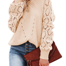 Damen Eleganter Strickpullover mit luftiger Häkelstruktur und weiten Ärmeln Stilzeits