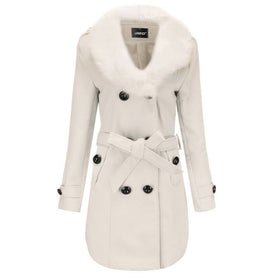 Damen Eleganter Trenchcoat mit abnehmbarem Fellkragen Stilzeits