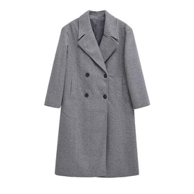 Damen Eleganter Übergrößen Doppelreiher-Wollmantel Stilzeits
