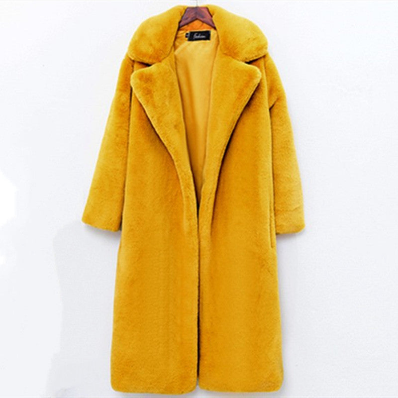 Damen Eleganter und voluminöser Kunstpelzmantel mit breitem Kragen Stilzeits