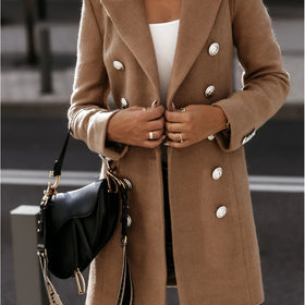 Damen Eleganter und warmer Wollmantel mit doppelter Knopfreihe Stilzeits