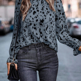 Damen elegantes Blusenshirt mit Rüschenkragen und tierischem Muster Stilzeits